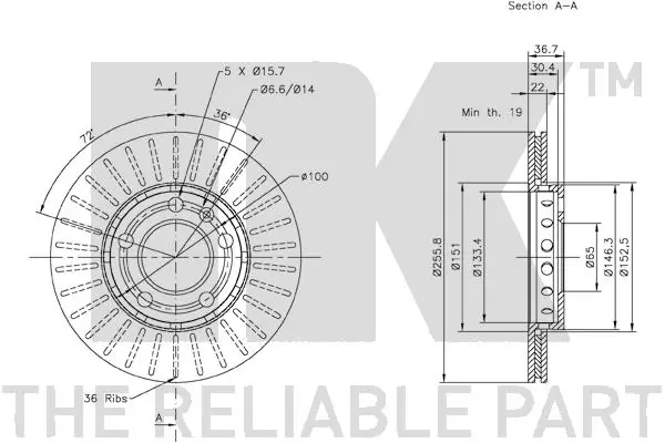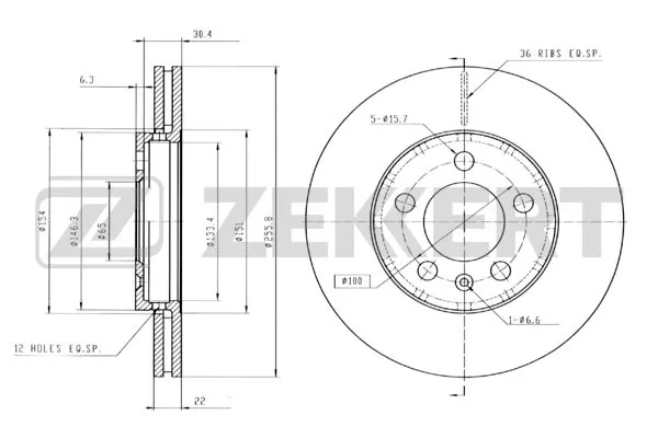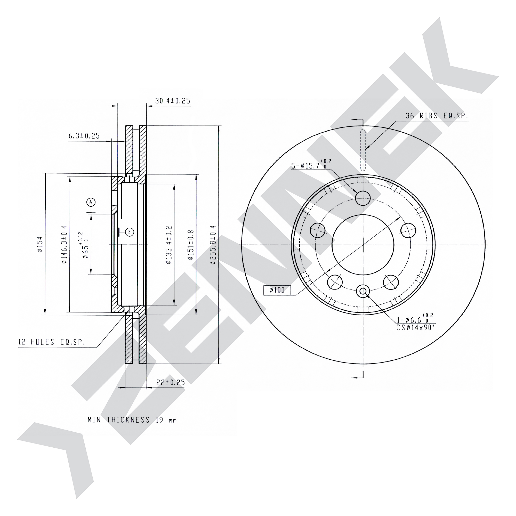 диск тормозной !перед. 256x22/37-5x100 Audi A2/A3, VW Golf/Bora 1.6 96